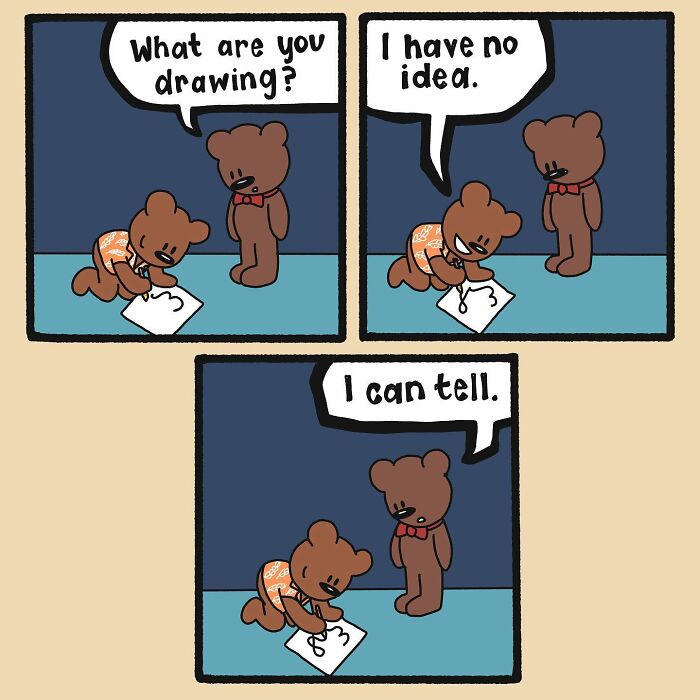 Even though Wendi’s comics are not very well-known yet, they are full of personality and creativity. We’re excited to share her work here on Bored Panda and help more people discover the captivating stories of Theo and Ted. We think her comics deserve a wider audience, and we hope you’ll love them as much as we do! More info: Instagram “Knowing I liked to draw, and also aware of my general lack of direction, my dad would periodically suggest, ‘You should make a comic, like Peanuts.’ So I tried to come up with an idea for a comic. My kids were young then, and they had a massive teddy bear collection. I remember looking at their bears one day and thinking to myself, ‘I wonder if they’d all get along.’ Of course not!” “It was about ten years before I seriously tried again. My kids were older and now I had better tech. I tried doing a joke a day, like Garfield, my favorite comic growing up. But after doing about a hundred and fifty, I kind of wanted to try something new. I wanted to try a story that went for more than three panels. So I took some jokes I’d written about the tooth fairy, and tried expanding it into a story involving Theo trying to enlist Bean (the smallest bear) to try and help him steal the tooth fairy money. It’s not amazing, but I enjoy the challenge, and I would like to write more lengthy stories.” “I feel most alive. If I can do a little creativity that day, it feels like a good day. I also watercolor and dabble in writing other stories I hope to someday flesh out. I took my first 150 comics and printed them as a photo book and gave my dad a copy for his birthday. It’s kind of embarrassing because you know they aren’t so very good, and your parents are probably worried about what you’re doing with all your spare time. His reaction wasn’t effusive (like super expressive and positive), but later my siblings would come to me and tell me dad had shared my comics with them, and how much they liked them, and that made me feel really good. You feel like you’re sharing a bit of yourself with people you care about.” “It feels exhausting to do every step. There are so many decisions to make. It’s overwhelming. But if you take your time, and keep plugging away, eventually you kind of start to find a rhythm that feels doable. And it’s exciting. You feel like you’re part of the larger comics community (even though I’m shy and I don’t really talk to anyone about comics, online or otherwise). You are part of that select group of people that show up consistently and create, and that is really satisfying.” Follow Bored Panda on Google News! Follow us on Flipboard.com/@boredpanda! Please use high-res photos without watermarks Ooops! Your image is too large, maximum file size is 8 MB.
