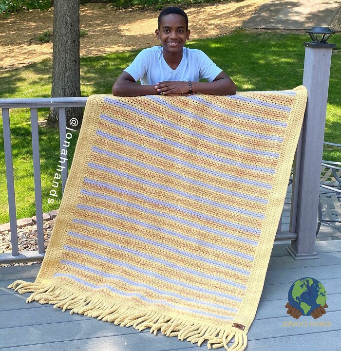 Jonah was adopted from Ethiopia when he was only 6 months old, and now he lives in La Crosse, Wisconsin. From the early age of 5, Jonah was introduced to crocheting, which soon became his passion. Over the years, the boy has crocheted many sweaters, hats, blankets, toys, and basically anything you can think of.