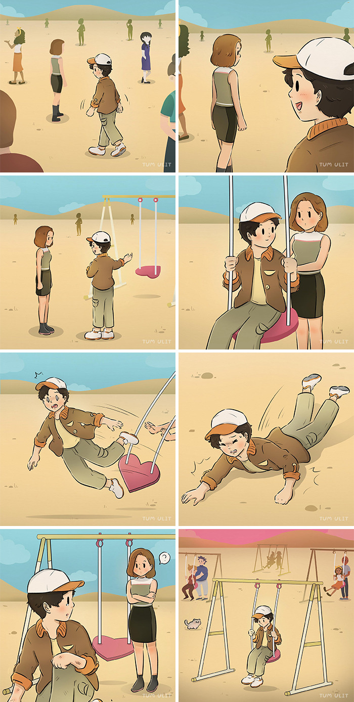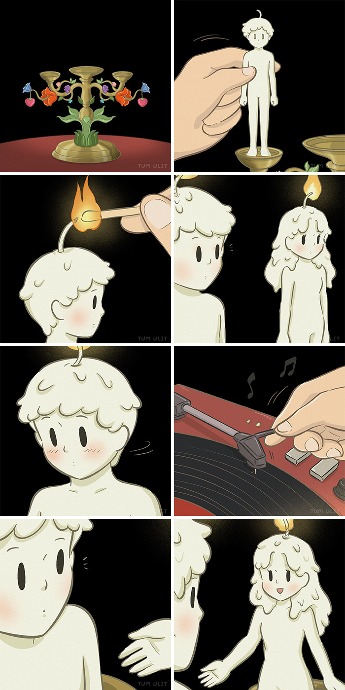This year, the artist opened a solo exhibition titled “Who’s Cutting Onions?”, a name that perfectly captures the essence of his work. While his illustrations are cute and charming, the stories they portray delve into deep and serious subjects, evoking a range of emotions that linger long after viewing. From looking for relationships to letting go, we invite you to explore the messages that Tum has so carefully explored through his art. More info: Facebook | Instagram