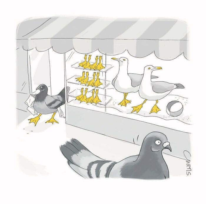 Additionally, the artist’s cartoons have been recognized and featured by The New Yorker magazine. Scroll down to see a selection of single-panel works from Kate Curtis, featuring commentary on modern times, politics, and other relatable topics.