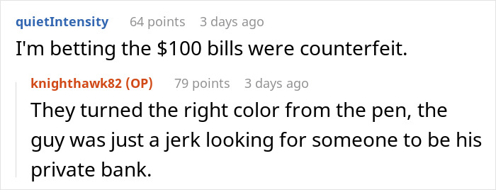 A good example of this is a story one Redditor shared from their past. The person was working at a gas station when they encountered a guy who repeatedly came in and bought a single candy bar with a $100 bill just to break it into smaller bills. What he didn’t calculate was that his plan could backfire. Scroll down to read the full story! More info: Reddit