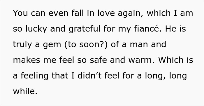 When the OP (original poster) was just 22 years old, life dealt her a very hard hand to play. Her husband tragically passed away in a car accident just five months after their wedding. After the heartbreaking loss of her high school sweetheart, who had become her husband, the OP held onto her wedding rings for as long as she could. But eventually, she decided they shouldn’t just sit in a drawer, so she took her late husband’s rings, as well as hers, to a jeweler to have them transformed into a pendant and small earrings. While the earrings found a safe place in her jewelry box, the necklace became her daily reminder of a beautiful lost love. She still loves wearing that necklace every day, as “I like the way it looks and because I like the idea of having a tangible part of him with me always,” the OP says. A few years later, life took a brighter turn for the OP as she found love again. She has now been dating her loving boyfriend for almost 2 years, and when he proposed to her, she happily accepted. The fiancé is a kind and supportive man who understands her journey and accepts her past. But just when things were looking up for the OP, her former sister-in-law, Ava, invited her out for drinks, to catch up, as they hadn’t seen each other in a while. Ava congratulated the OP on her engagement but then made a surprising request – she wanted to have the necklace that the OP had made from her late husband’s ring. “She then asked me if she could have my necklace since it would mean more to her as his sister than it would to me now that I was getting remarried and moving on,” the OP recalls. The OP was caught off guard, so she politely said she would consider it, but deep down, she has no intention of giving up her necklace. After all, it’s a very precious symbol of her past love. This left her feeling uneasy and she started asking herself if it’s wrong to hold onto the past by keeping her necklace. Her best friend thought so, suggesting it’s time to let go. “She said that I should get a new necklace and make new memories,” the OP continues. However, the OP knows that love and grief can work together. While she cherishes her late husband’s memory, it does not hold her back from the love she has for her fiancé. He is very understanding and accepting of her feelings, reassuring her that her attachment to the necklace doesn’t affect their relationship in any way. “I have moved on, and I am completely happy in my relationship, and I am so excited for the life we are creating together. But a part of me will always have love for my former husband and mourn him and the life that we could have had together, and I don’t think that that takes away anything from my new relationship. They are different loves and lives,” the OP explains. Share icon Image credits: roni onie (not the actual image) In her heartfelt post, the OP expressed deep gratitude for her best friend, who was her rock during her darkest times. Her friend’s support during the court hearings against the drunk driver, their shared grief, and the strength she provided were invaluable. “It felt like my brain snapped and she helped me stick it back together. I don’t know where I would be without her. She stood so strongly for me during the court hearings, I had never felt such pure, unadulterated hatred towards anyone or anything, as I did to that driver, and she held my hand through it all and helped me get through it,” the OP recalls. Having a friend during tough times, especially during loss, is priceless. Friends offer a safe space to grieve, share memories, and provide the empathy and validation we need to heal, as explained in an article on this topic. “All humans in their lifetime will experience grieving a dead loved one. It’s normal (even animals grieve), but it’s always hard. Companionship is vital in our lives. The same holds true during grief. The presence of someone who acts as a support, a presence, a companion through the darkness, is critical in the process of grief,” the article states. It’s no wonder the OP felt so grateful to her best friend who stood by her side through the darkest time of her life. Grief is a natural response to loss, whether it’s the death of a loved one, the end of a relationship, or maybe the end of a precious dream. It’s an emotional storm, where feelings of shock, anger, disbelief, guilt, and profound sadness can come up, often unexpectedly. “People grieve in different ways. Some expect sympathy cards, some an ‘I’m sorry,’ and some grieve quickly and move on. Others may find themselves in denial a lot longer. Even others will never want to talk about death, promptly changing the subject if it arises,” the article explains. The five stages of grief, as described by the authors David Kessler and Elisabeth Kübler-Ross, in their book with the same name, start with denial. This is our initial response to loss, which helps us manage our overwhelming emotions. As denial slowly fades, anger takes its place. Sometimes we direct that anger towards ourselves, other times we turn against loved ones, and sometimes we blame higher powers. Whoever it may be direct toward, that anger comes with feelings of abandonment and injustice. Next comes bargaining, holding hands with guilt and “if only” thoughts. Depression sets in next, bringing with it deep sadness as we finally take in the full impact of our loss. Finally, acceptance arrives, not as agreement with the loss but as recognition that it’s a permanent part of our reality, allowing us to find resilience and move forward. While it’s unclear which stage of grief the sister-in-law is navigating, one thing is certain – grief is a complex journey that has a way of connecting the past with the present, turning old rings into new beginnings. What’s your take on this story? Do you think the OP would be right to hold on to her necklace? Let us know in the comments.