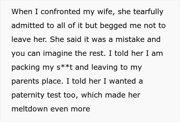 The man confronted his wife, who confirmed that what the friend said is true, and asked her for a paternity test