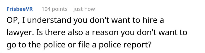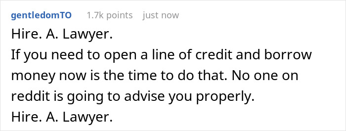 Redditors weighed in telling the woman to get a lawyer, because this is definitely a matter for the courts