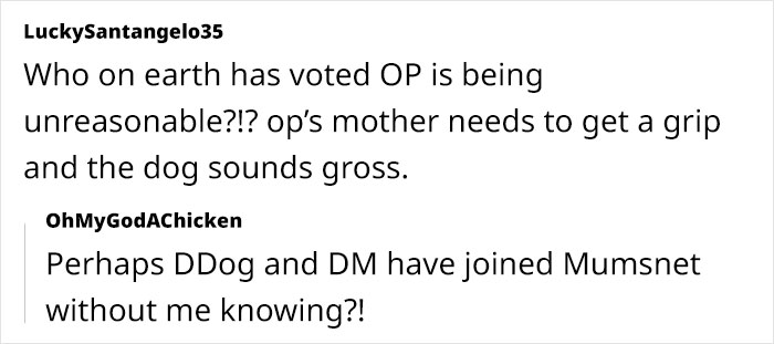 For one woman, she’s at her wits’ end over her mother’s absurd “requirements” for her pooch, including everything from feeding it rotisserie chicken off the floor to bringing along its own special humping blanket. She turned to Mumsnet to vent. More info: Mumsnet