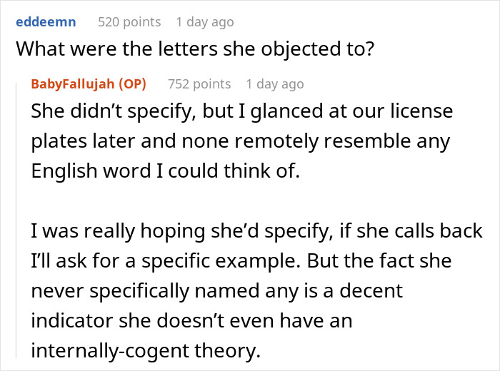 One Redditor had a close shave with crazy during a night shift when a woman stormed into the auto-parts store he works at and demanded to speak to the manager about an alleged copyright infringement on the store’s customized license plates. Flabbergasted, the man took to Reddit to share his story. More info: Reddit
